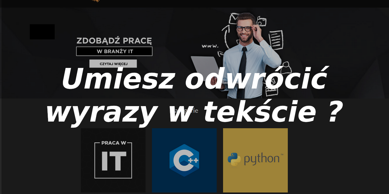 tekst = 'Jeśli wszyscy myślą tak samo, to ktoś nie myśli wcale' tekst_odwrocony = ' '.join(slowo[::-1] for slowo in tekst.split()) print(tekst_odwrocony)